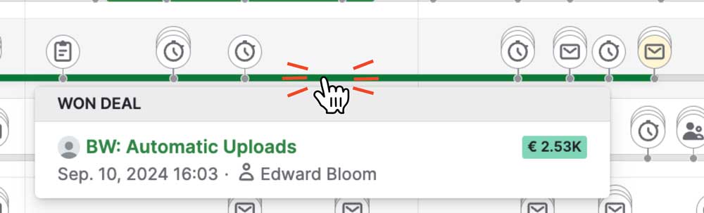 Pipedrive, on the other hand, offers a unique and elegant view to stay in touch with customers or leads: the Timeline for Contacts.