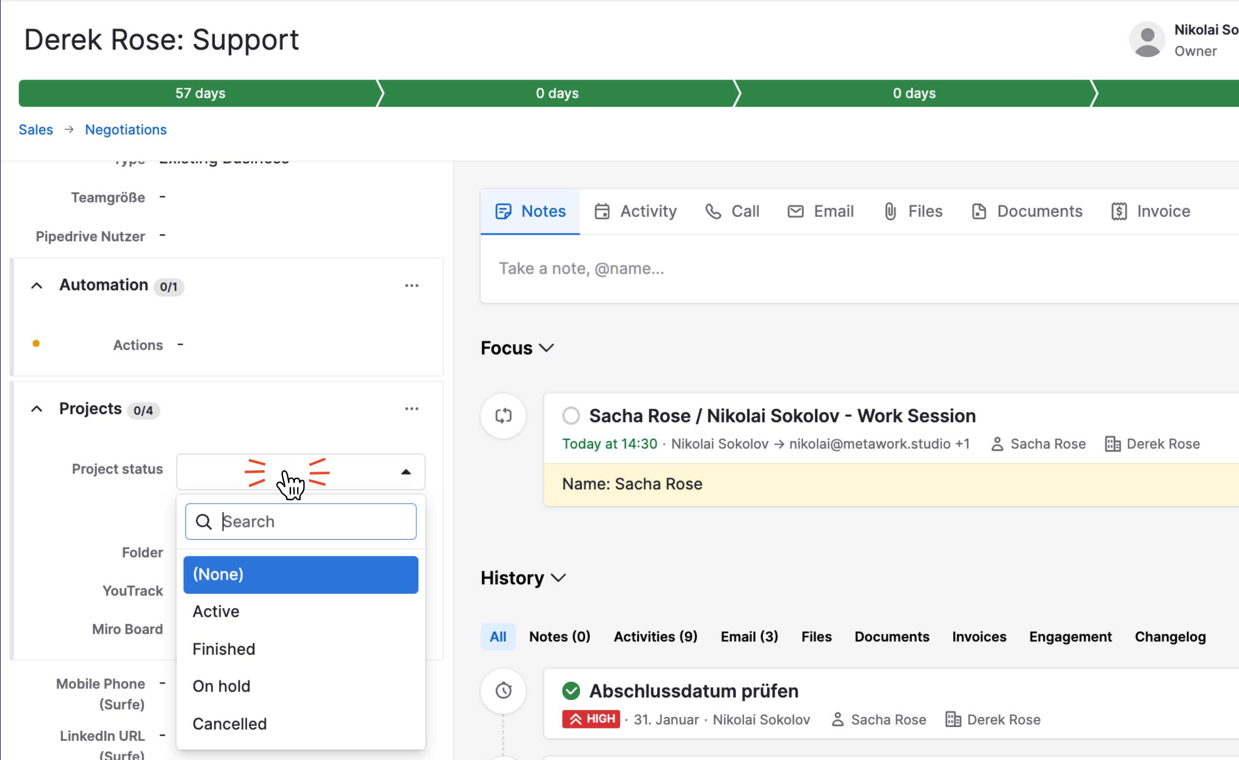 We use three workflows that write the most important project statuses into the corresponding deals.