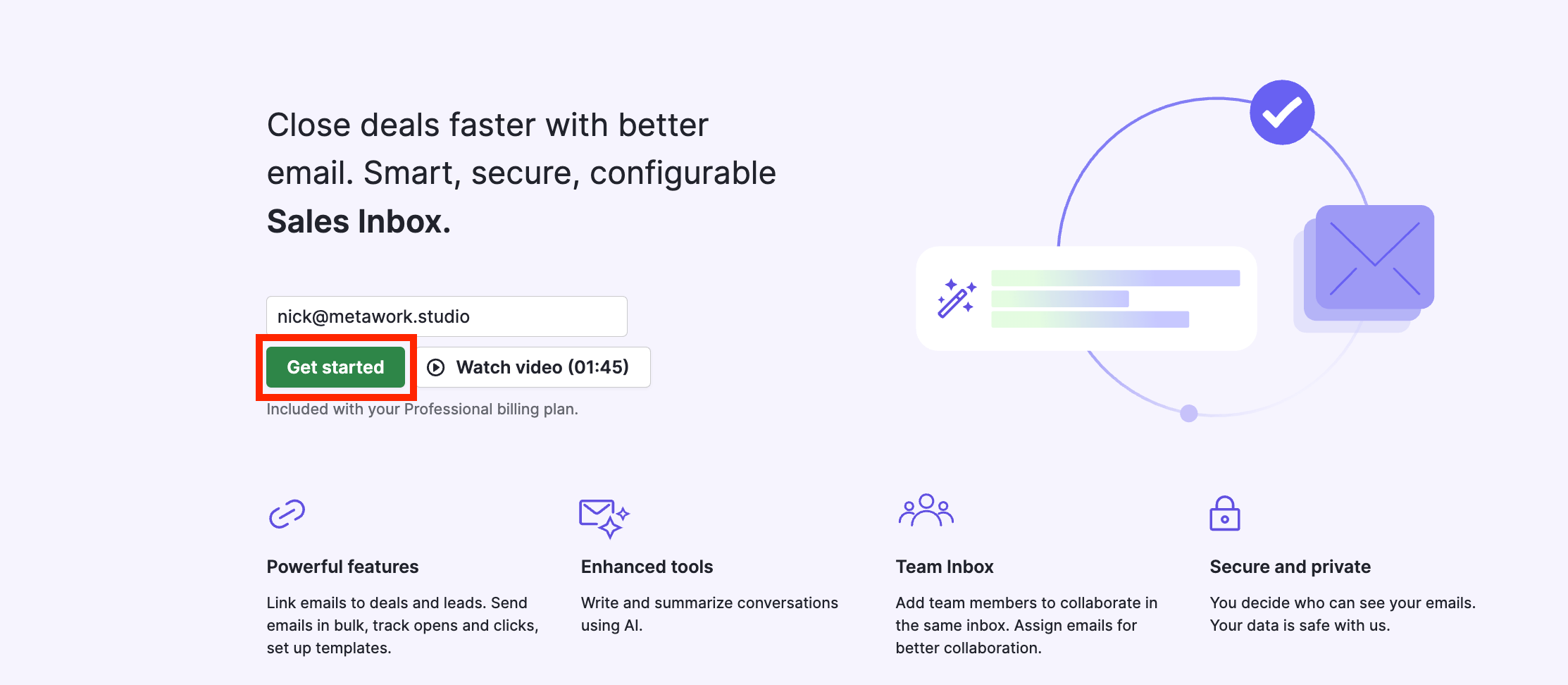 - All emails from your inbox are marked as private by default, and only you can see the email content, as well as the email in the deal history or on the contact page.