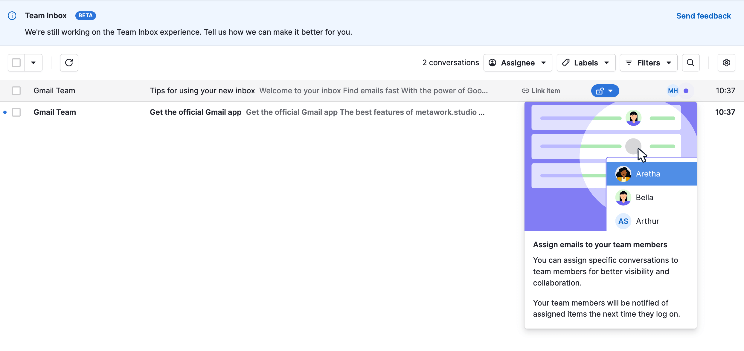With team inboxes, an entire team can read, send, link emails, and most importantly, assign them to each other as a “Task.”