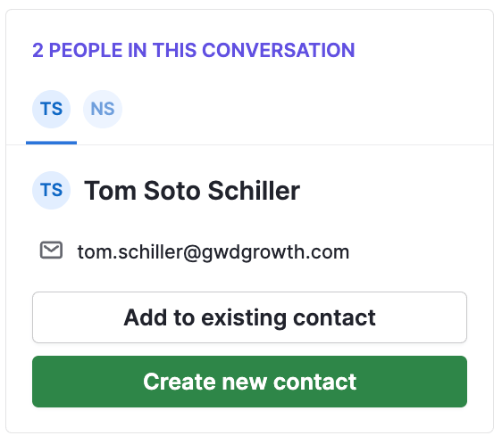 Alternatively, click on the desired email in Sales Inbox and look in the right sidebar to see if contacts were found. If buttons appear to add the email to an existing or new contact, the contact is not in Pipedrive: