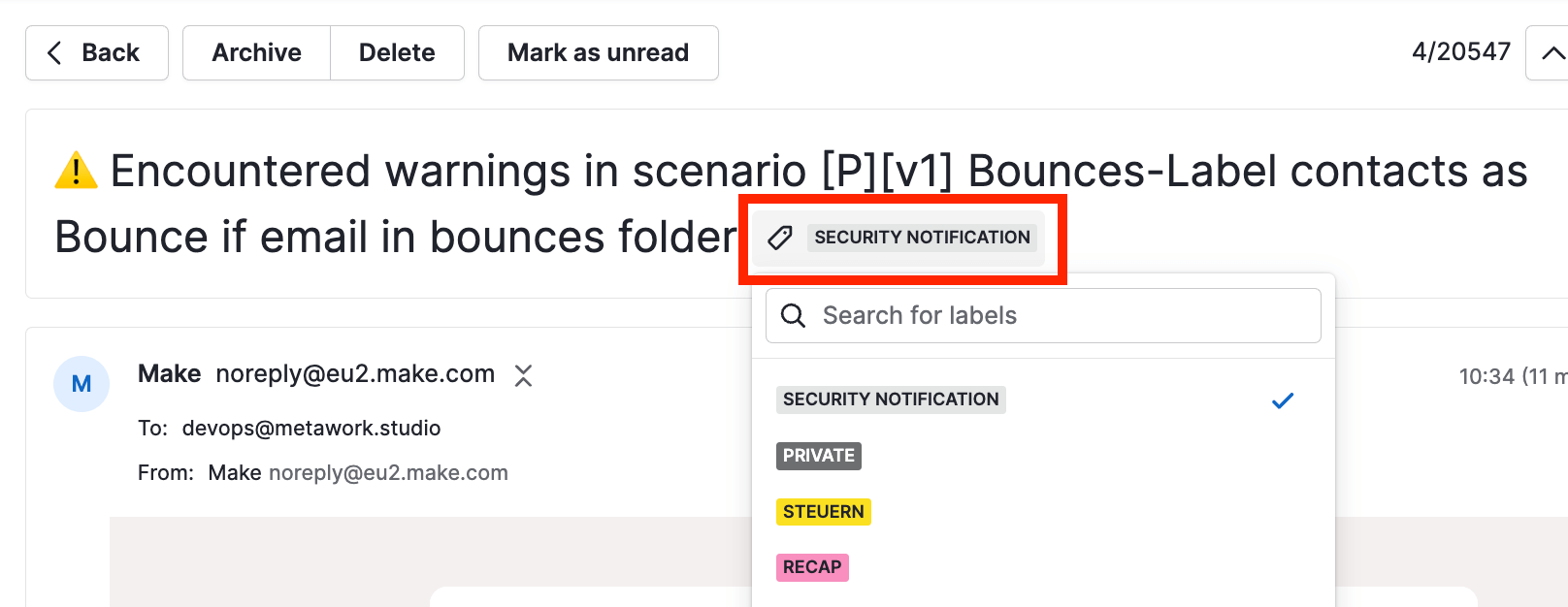 Labels for emails simplify the visual search for specific emails and enable fast filtering. These labels are only displayed in the Sales Inbox.